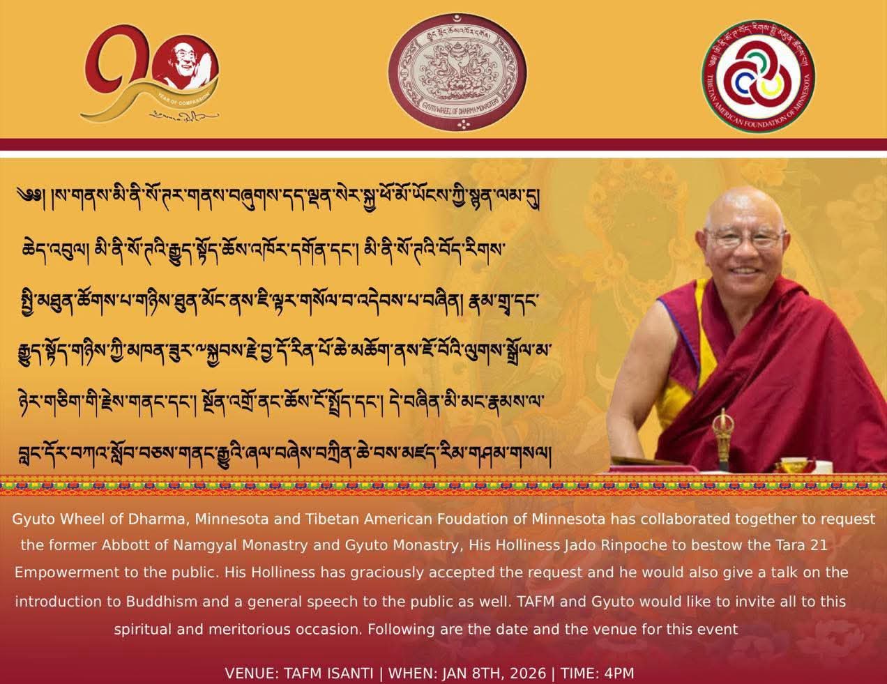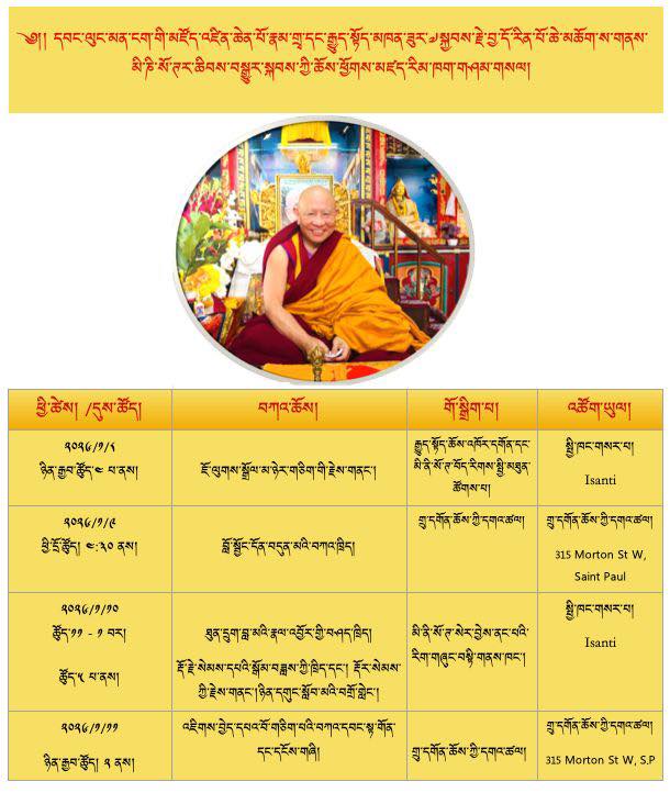 His Eminence Jhado Rinpoche’s Minnesota Visit Schedule