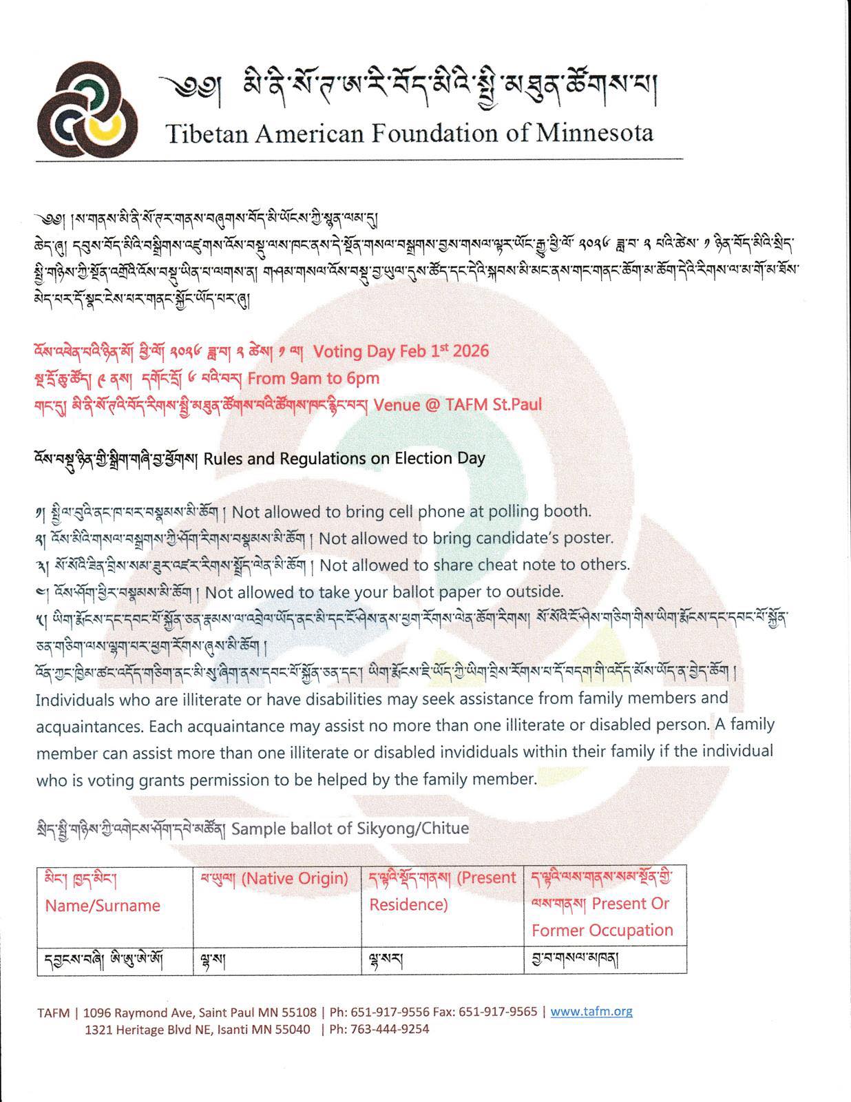 2026 Sikyong and Chithue Election
